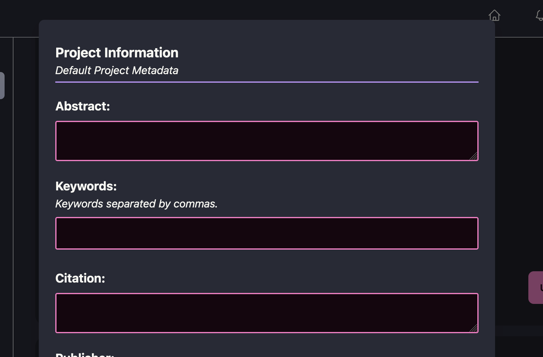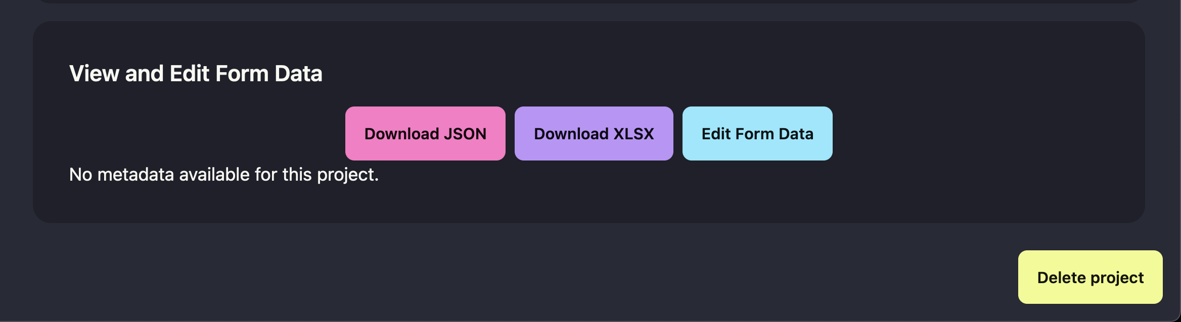 You can go to settings to edit this selection, download project metadata, and fill out the metadata form.
