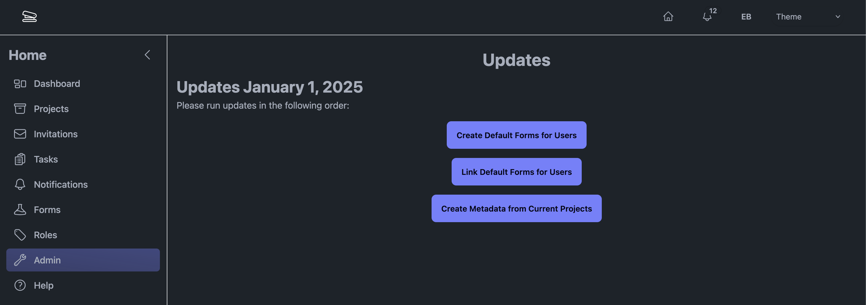 As part of our project metadata update, when you create a new project with assigned metadata form, you will automatically get a new task that reminds you to complete the form for the metadata. :)