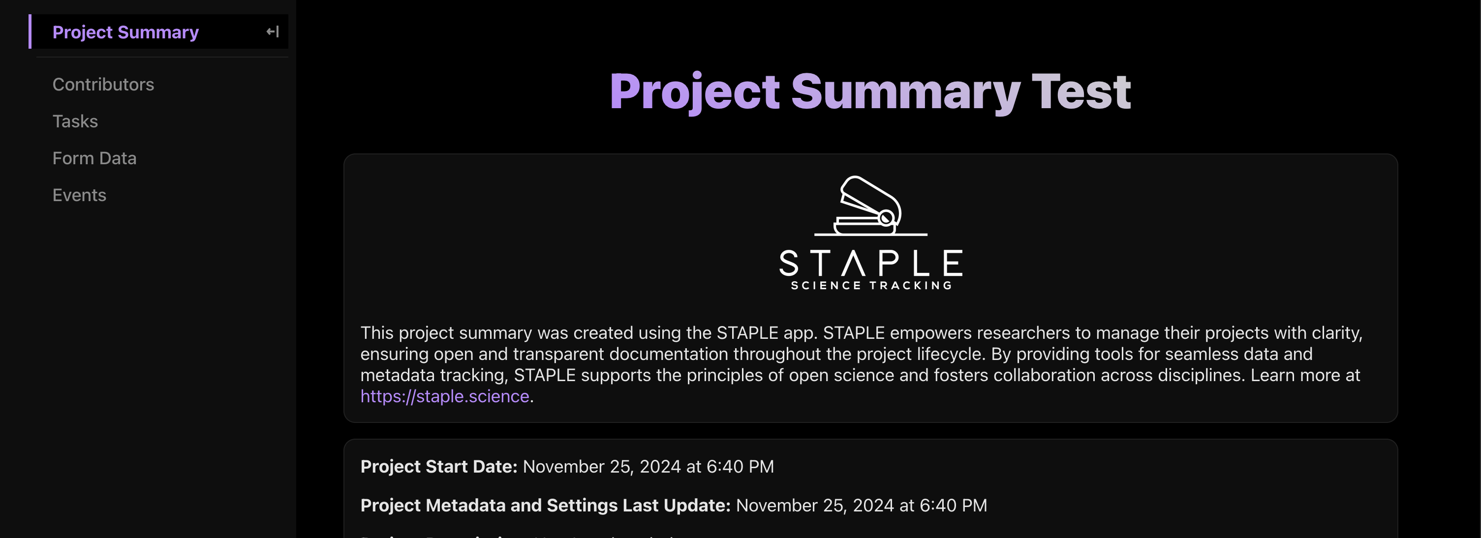 There will be a few options for project summaries, which we hope people will share along with other information about their project (data, stimuli, materials, etc.).
