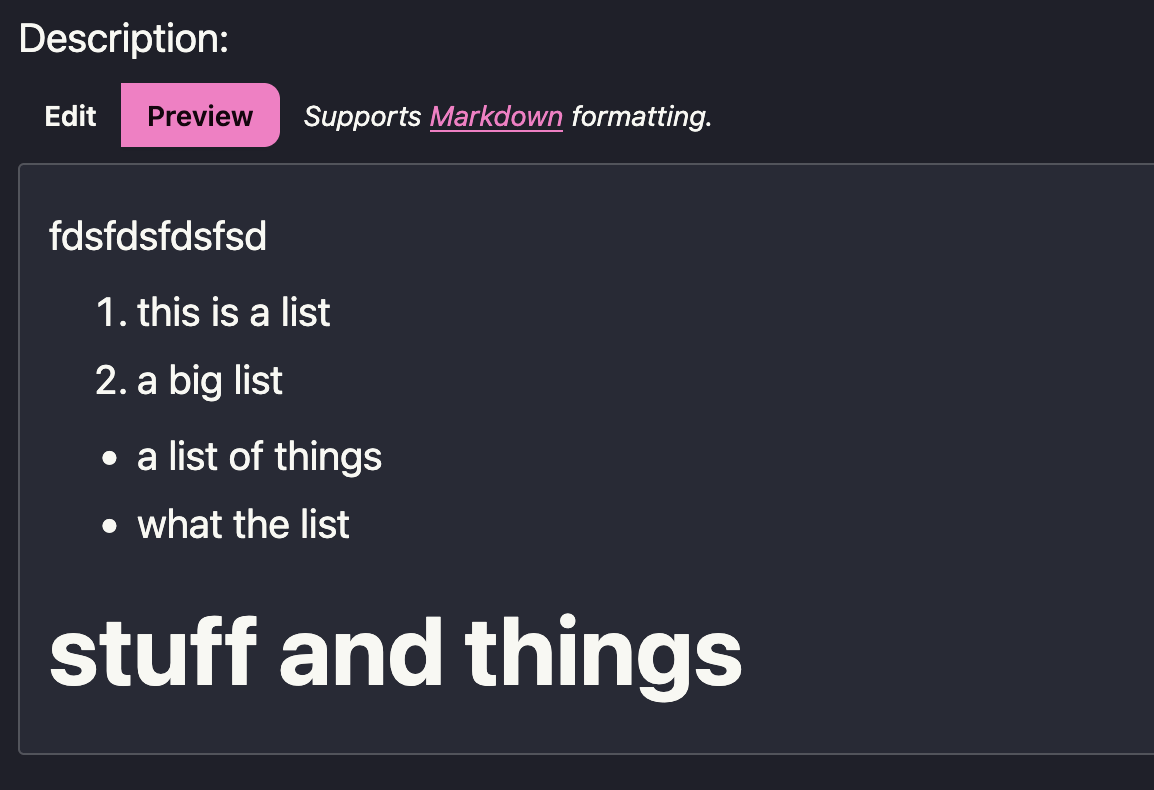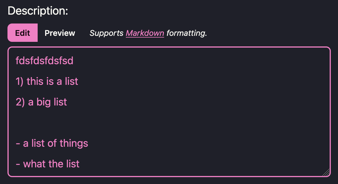 Formatting is only helpful if you can see it. That’s why we added a Preview toggle to textareas across the app:
