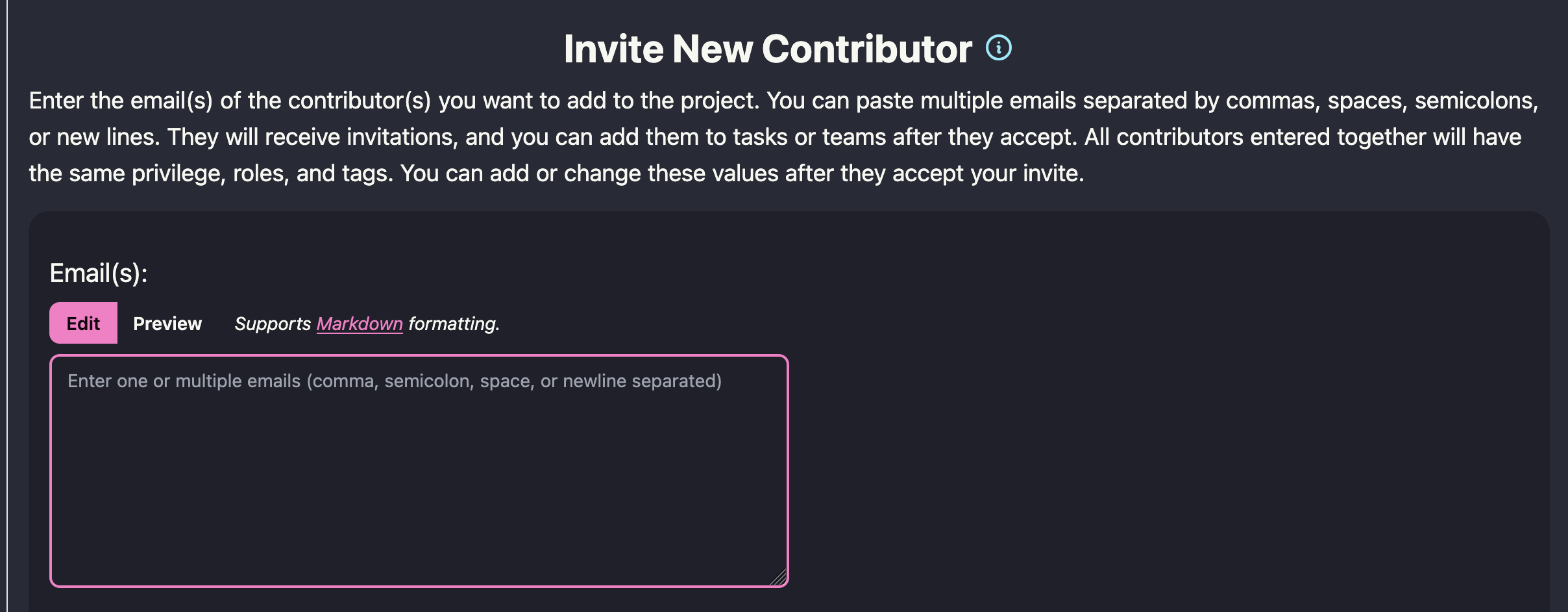 You can now invite multiple people to your project in one go. Just paste a list of emails—separated by commas, spaces, or new lines—and STAPLE will send out all the invitations automatically. No more repeating the form for each person!